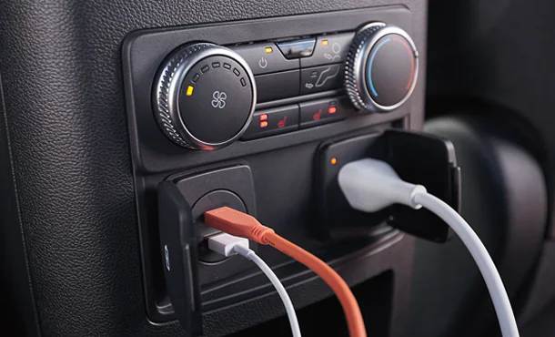 Sạc nhanh điện thoại và máy tính bảng trên xe nhanh nhờ cổng sạc USB và USB Type C thông minh được trang bị trên xe.